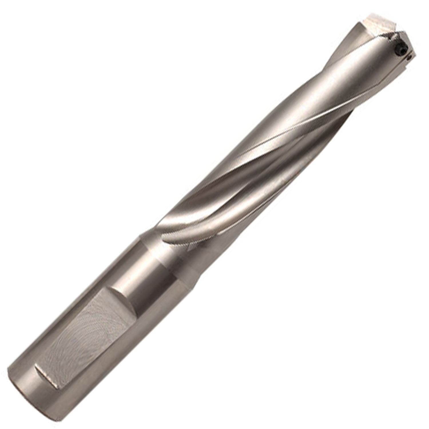 29.51mm - 32.00mm Insert Range, 32mm Shank, RT800WP 3XD Indexable Drill Body, Coolant Fed, Nickel Coated 96mm LOC,198mm OAL,32mm Shank Spiral Flute Tool Steel Drill Body with Reinforced Straight Shank and Whistle-Notch Flat per DIN 6535-HE Series No. 5242, Order Code 32.000, Guhring Part #9052420320000