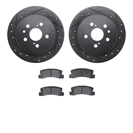 Dynamic Friction Company Rear Brake Rotors Drilled and Slotted Black with 5000 Advanced Brake Pads - 8502-76051