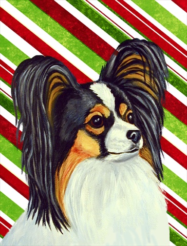 Carolines Treasures LH9255CHF 28 x 40 in. Papillon Candy Cane Holiday Christmas House Size Canvas Flag