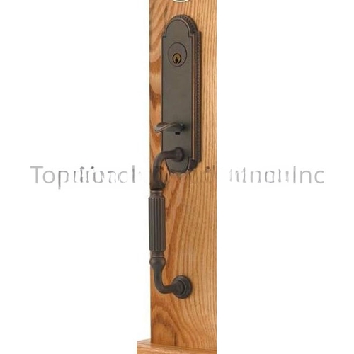 Simple yet elegant, the Orleans thumb latch entrance set has a traditional arched plate with beaded border and fluted handle. This classical design is offered with 6 popular finishes and 6 interior knob or lever options! Choose from ringed levers and door knobs made of glittering lead crystal or solid brass - so many ways to express your unique style! These vintage-style doorsets are enhanced with high-tech mechanics, resulting in silky smooth, trouble-free operation unlike anything you've ever experienced. Created expressly for modern, pre-drilled doors, installation is quick and easy for professionals or home owners alike. Made of forged solid brass this entry doorset will last for years to come.Door set dimensions: Exterior handle is 9" H x 1" W and projects 3". Exterior and interior backplates are same and measure 9 3/4" H x 2 13/16" W. Latch dimensions: Backset is 2 3/8" or 2 3/4" - specify when ordering. Latch case: 1" diameter. Latch face plate: 2 1/4" H x 1" W.<