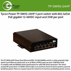 Tycon TP-SW5G-24HP IEEE802.3af PoE 12-36VDC High Power