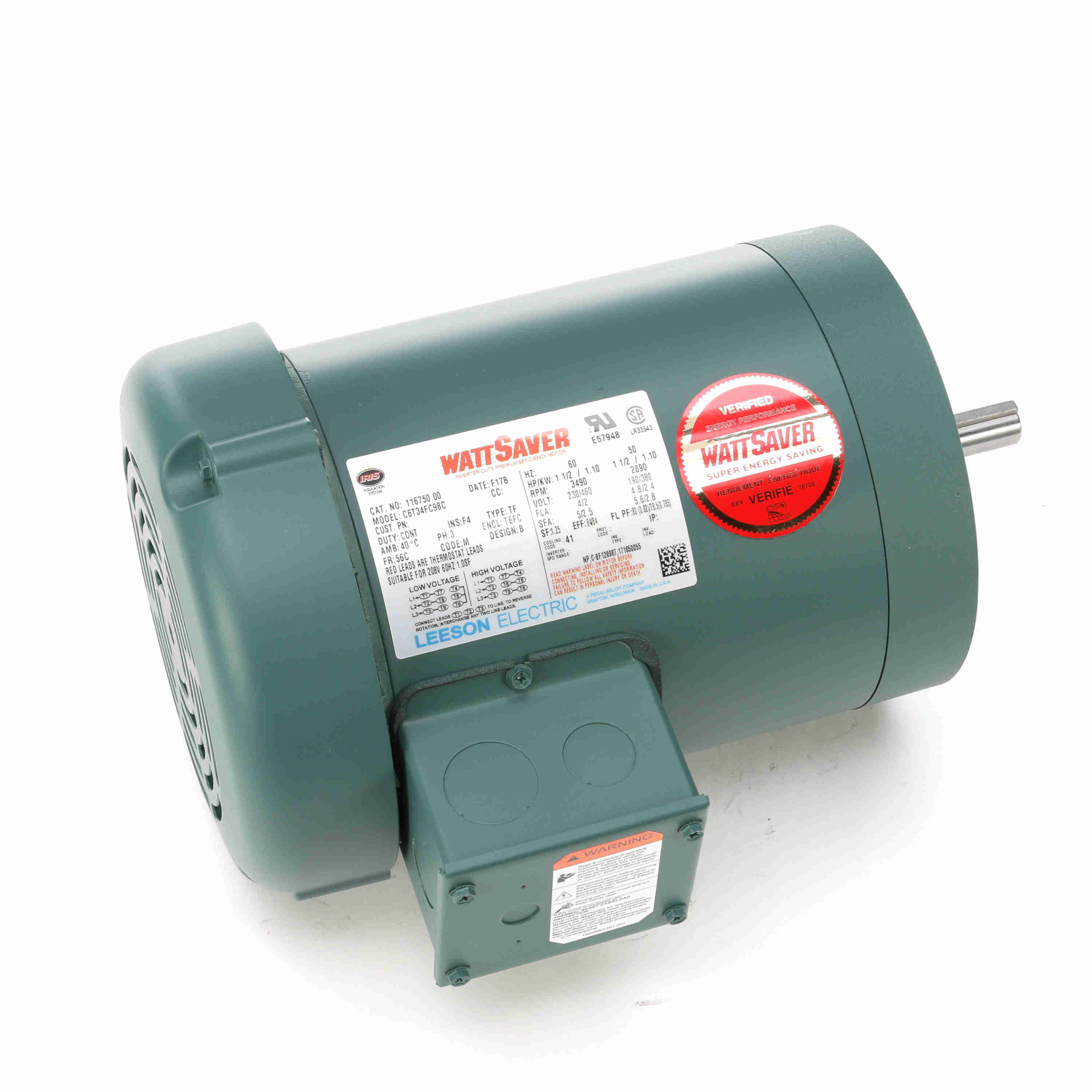 Leeson 116750.00 General Purpose C Face Motor, 3 Phase, 56C Frame, TEFC Enclosure, Round Mounting, 1.5HP, 3600 RPM, 230/460V Voltage, 60Hz Fequency