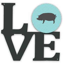 Carolines Treasures BB8107WALV 11.5 x 11.75 in. Berkshire Pig Blue Check Metal Artwork Love Wall Decor