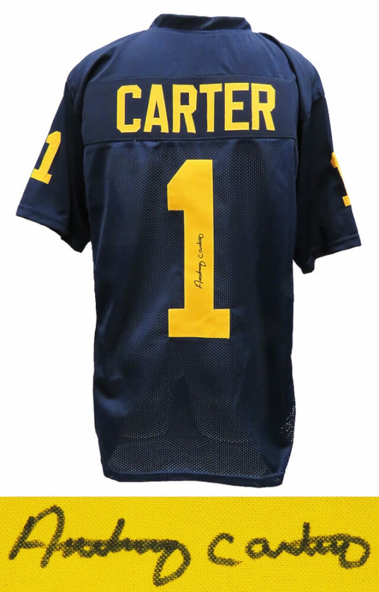Schwartz Sports Memorabilia CARJRY320 Anthony Carter Signed Navy Custom Football Jersey
