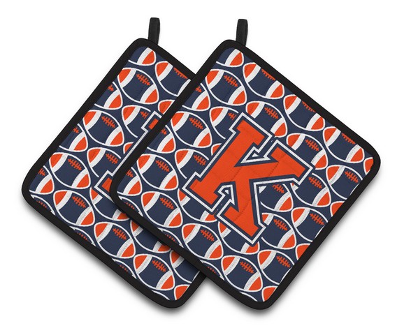 Caroline's Treasures CJ1066-KPTHD Letter K Football Orange, Blue and White Pair of Pot Holders, 7.5HX7.5W, Multicolor