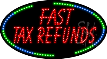 | Feature | Fast Tax Refunds Animated LED Sign is high impact, eye catching, real LED sign. |