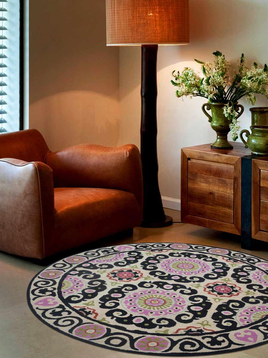 212 Main USK00208T0100B8 Hand Tufted Wool 8 x 8 ft. Round Oriental Area Rug, Beige & Multi Color