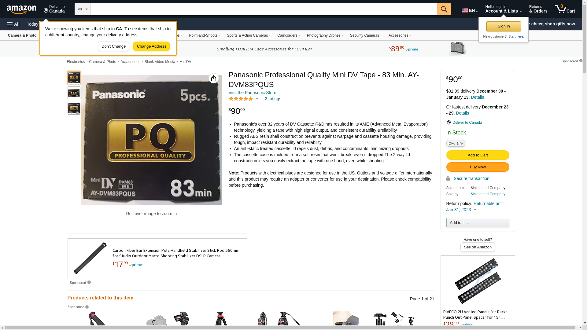 PanasonicAYDVM83PQUS 83 Minute Professional Mini-DV Cassette. Developed for the US Market Only, excellent electromagnetic performance,high durability, and optimal tape-to-heard contact.