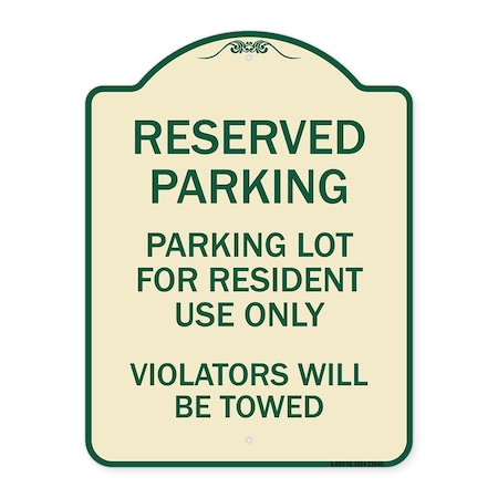 Reserved Parking Reserved Parking Lot for Resident Use Only Violators Will Be Towed Aluminum Sign