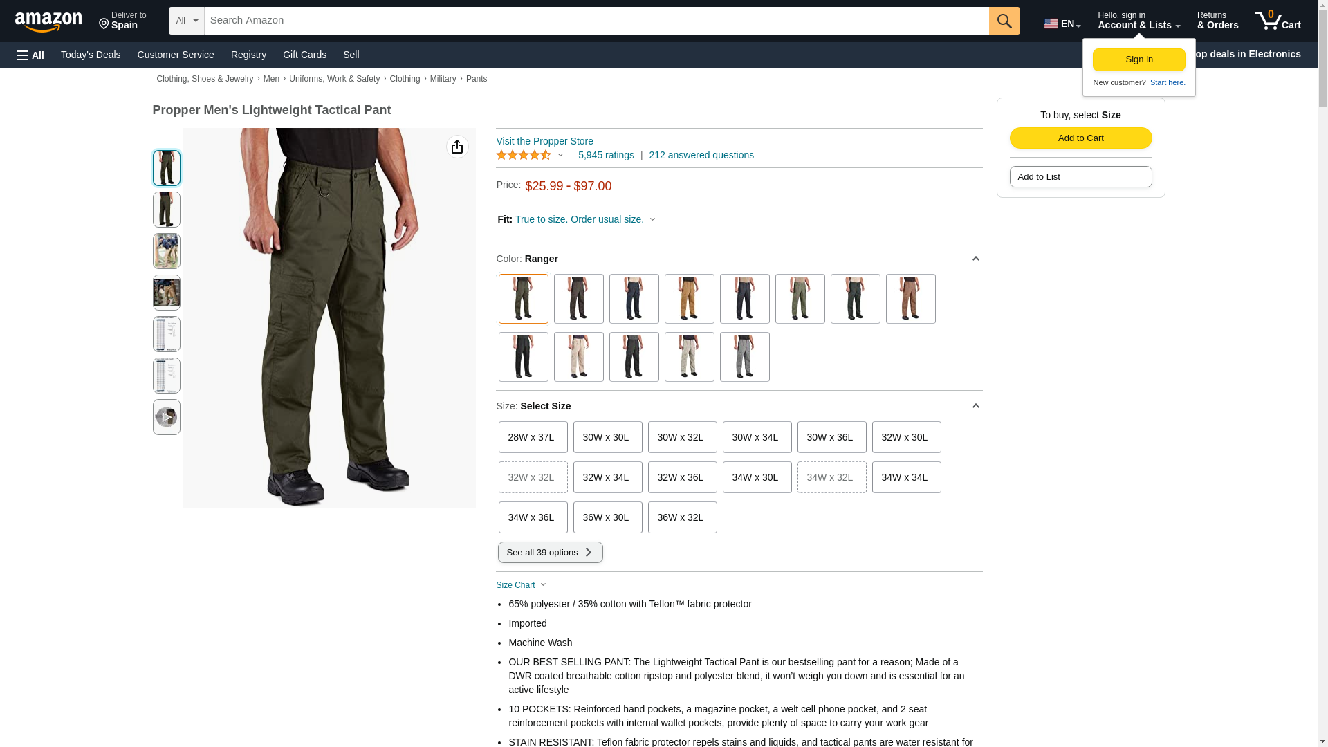 Propper F5252 Ranger Lightweight Tactical Pant 65 % Polyester/35 % Cotton Lightweight Ripstop Ranger 44 in Waist 34 in Length