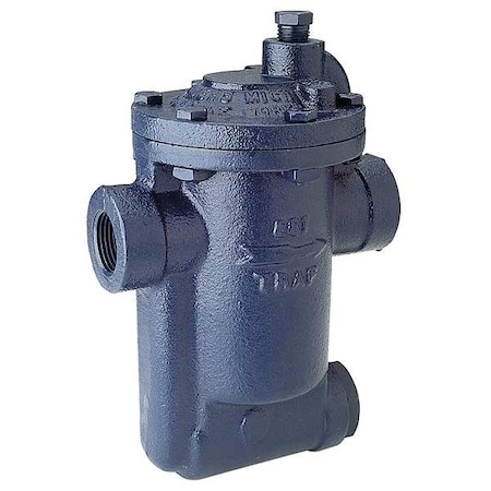 'Steam Trap, (F)NPT Connections 1/2 In., Max. Operating PSI 125 psi, End to End Length 3-7/8 In., Condensate Capacity Lbs/Hr 2000, Max. Temp. 450 Degrees F, Type Inverted Bucket, Body Material Cast Iron, Pipe Configuration Horizontal, Trap Position Horizontal, Application Steam'