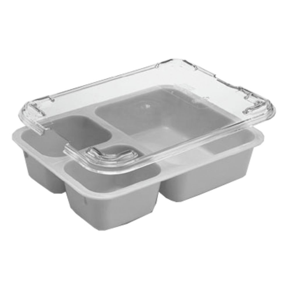 - Three-compartment meal delivery insert tray is made of polycarbonate material