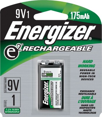 Energizer Rechargeable 9V Batteries, NiMH, 175 mAh, Pre-Charged, 1 Count (Recharge Universal) - Packaging May Vary