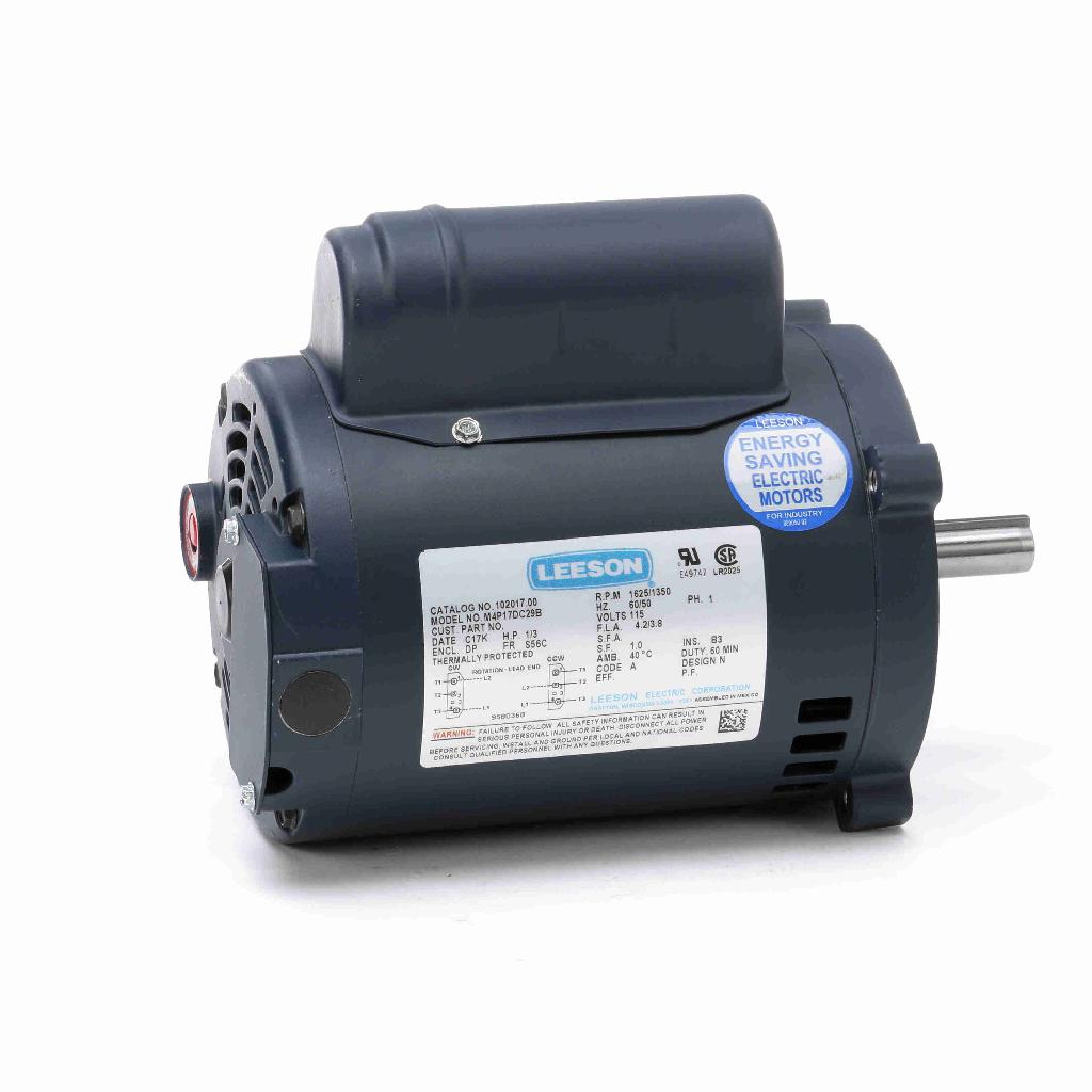 Leeson 102017.00 Instant Reversing Motor, 1 Phase, S56C Frame, Round Mounting, 1/3HP, 1625 RPM, 115V Voltage, 60/50Hz Fequency