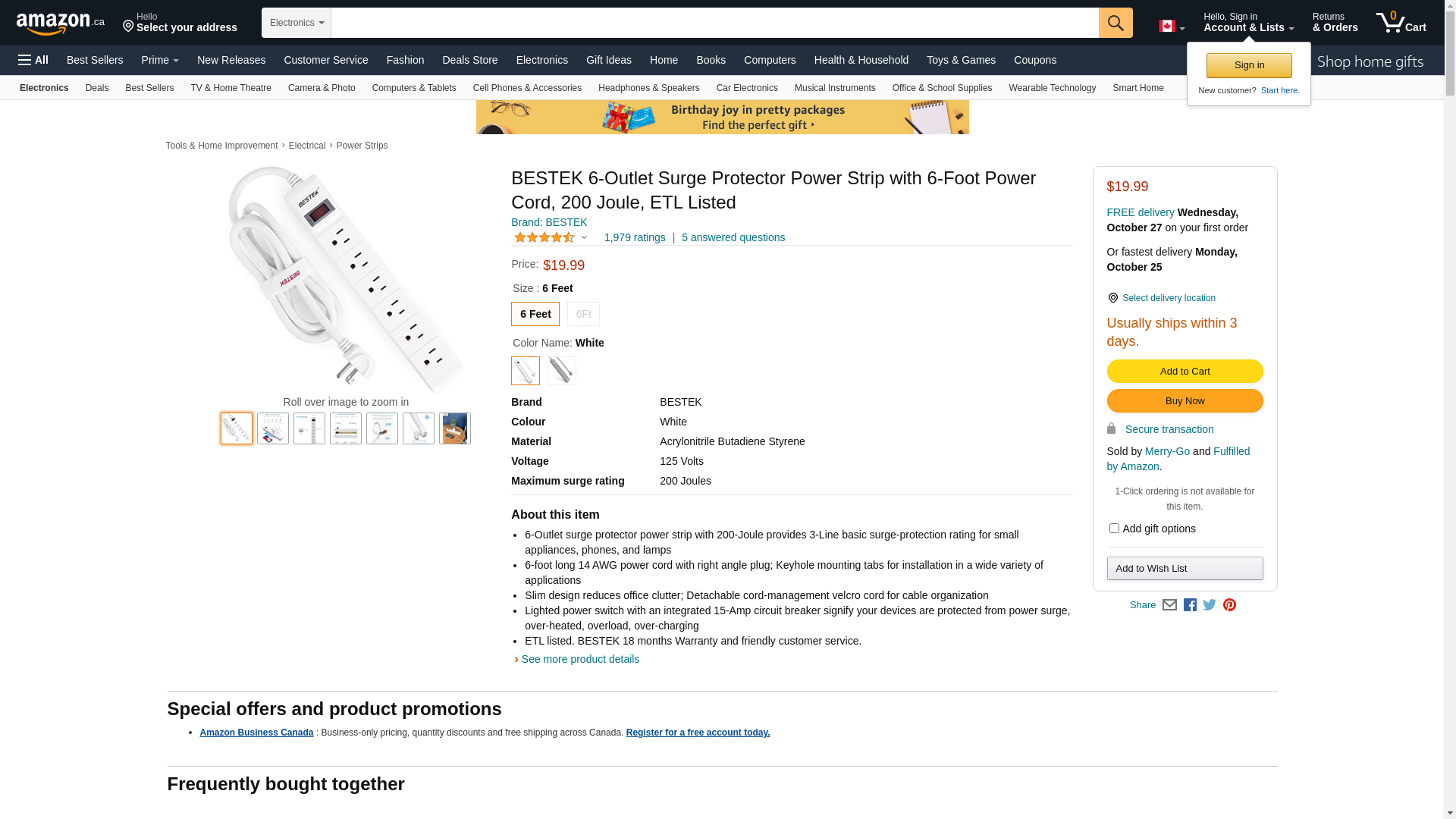 BESTEK 6-Outlet Surge Protector 15A 125V Commercial Power Strip with 6-Foot Long Power Cords and Right-Angled Power Plug, 200 Joules, FCC ETL Listed, White: Maxedbuy.com