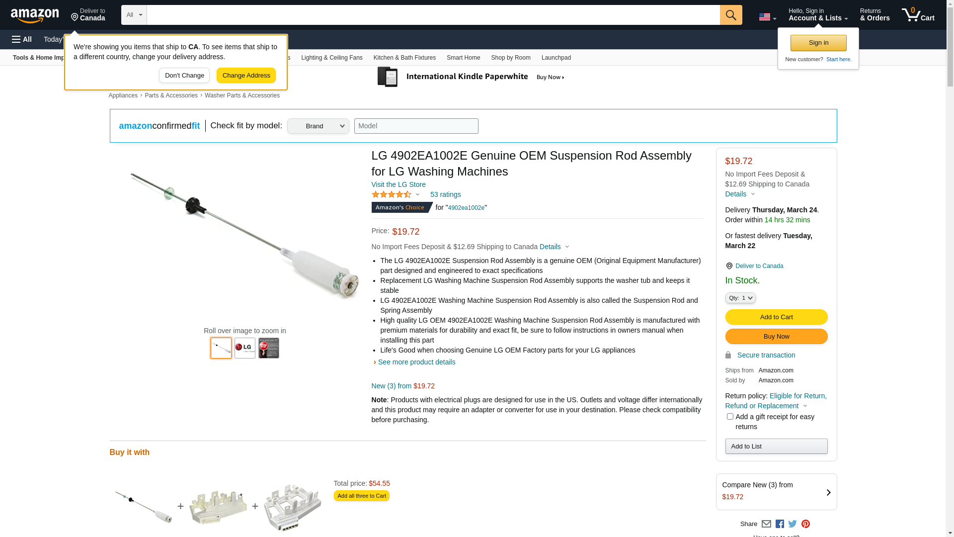 LG 4902EA1002E Genuine OEM Suspension Rod Assembly for LG Washing Machines