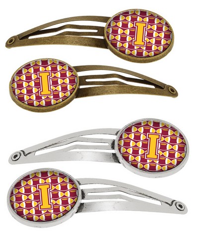 Carolines Treasures CJ1081-IHCS4 Letter I Football Maroon & Gold Barrettes Hair Clips, Set of 4