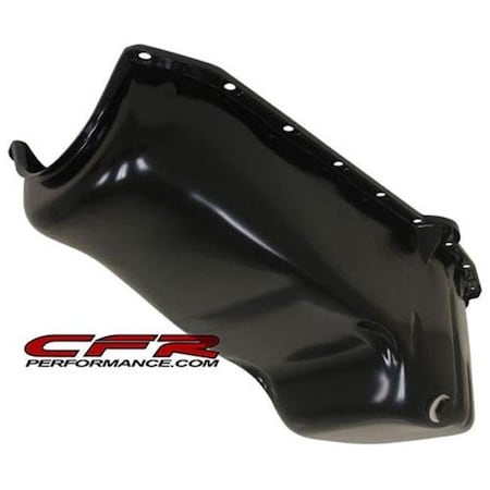 - Black steel Chevy small block chrome stock OEM style replacement oil pan fits 1958-1979 Chevy 283-305-327-350-400 engines.