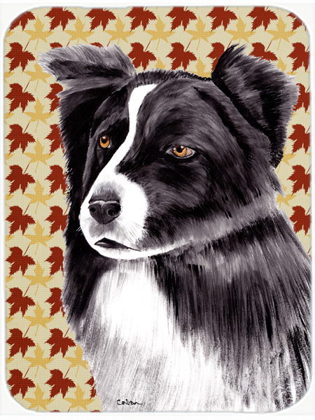 Carolines Treasures SC9207LCB 12 x 15 in. Border Collie Fall Leaves Portrait Glass Cutting Board, Large