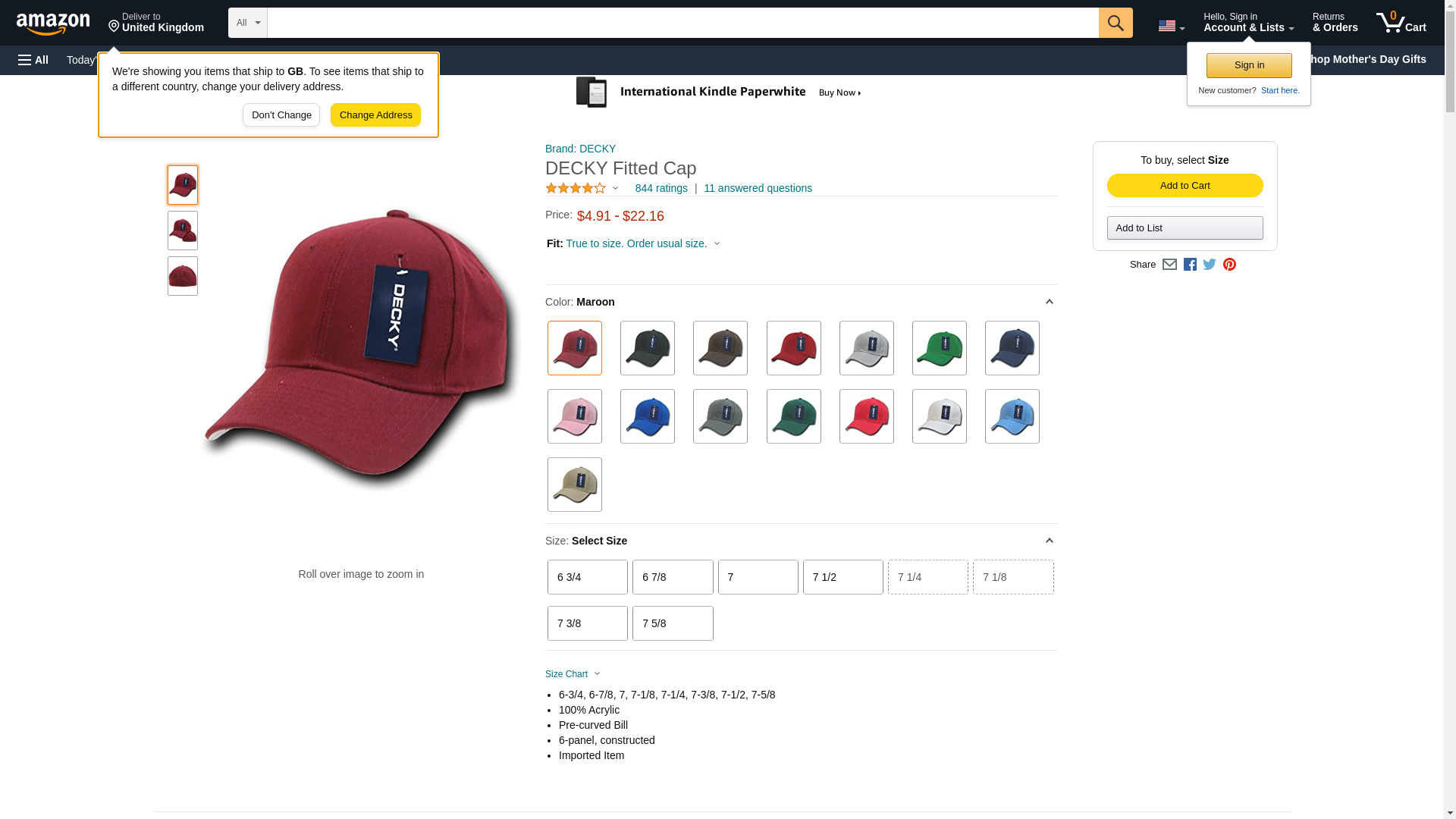 Decky 402-PL-MAR-26 Fitted Cap, Maroon, Size - 7.38