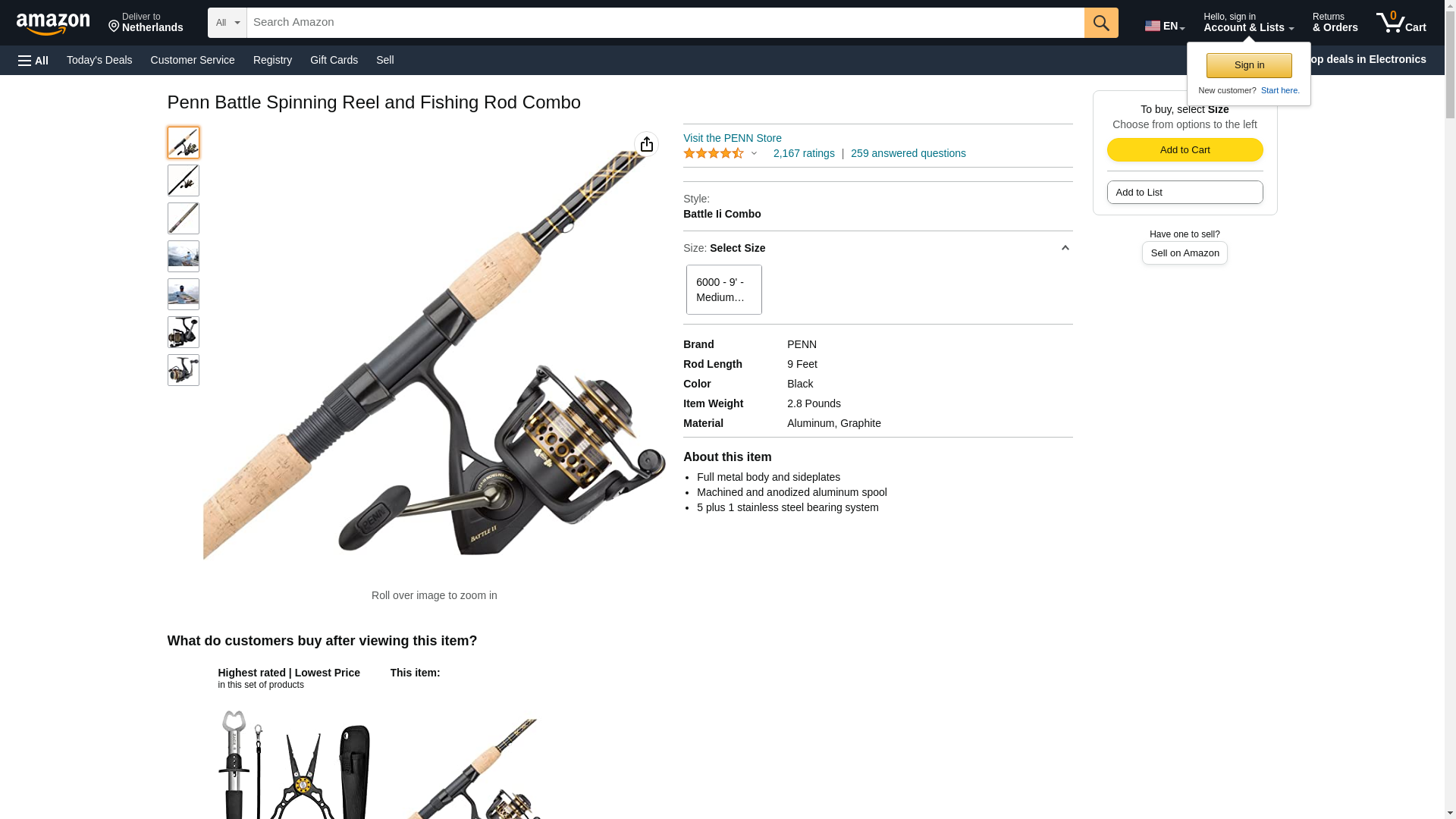 PENN Battle II 5000 Spinning Reel Combo, Surf, 8 Feet, Medium Power