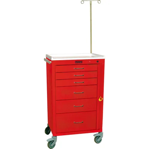 Harloff Mini24 Six Drawer Emergency Cart, Breakaway Lock and Accessory Package, Red - 4156B-EMG