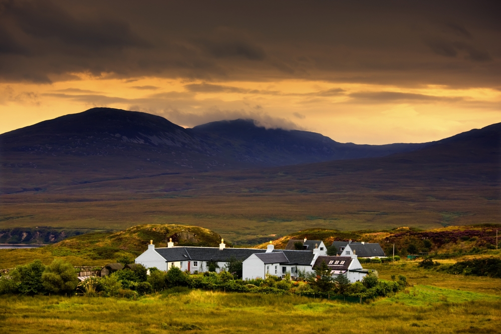 Posterazzi DPI1846290 Paps of Jura Jura Scotland - Houses with Mountain Backdrop Poster Print, 18 x 12