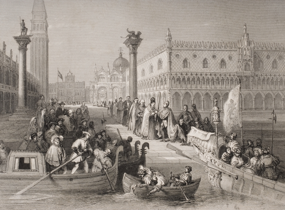 Posterazzi DPI1857042 Venice Italy The Embarkation of The Doge. Engraved by Challis After Basfano Poster Print, 16 x