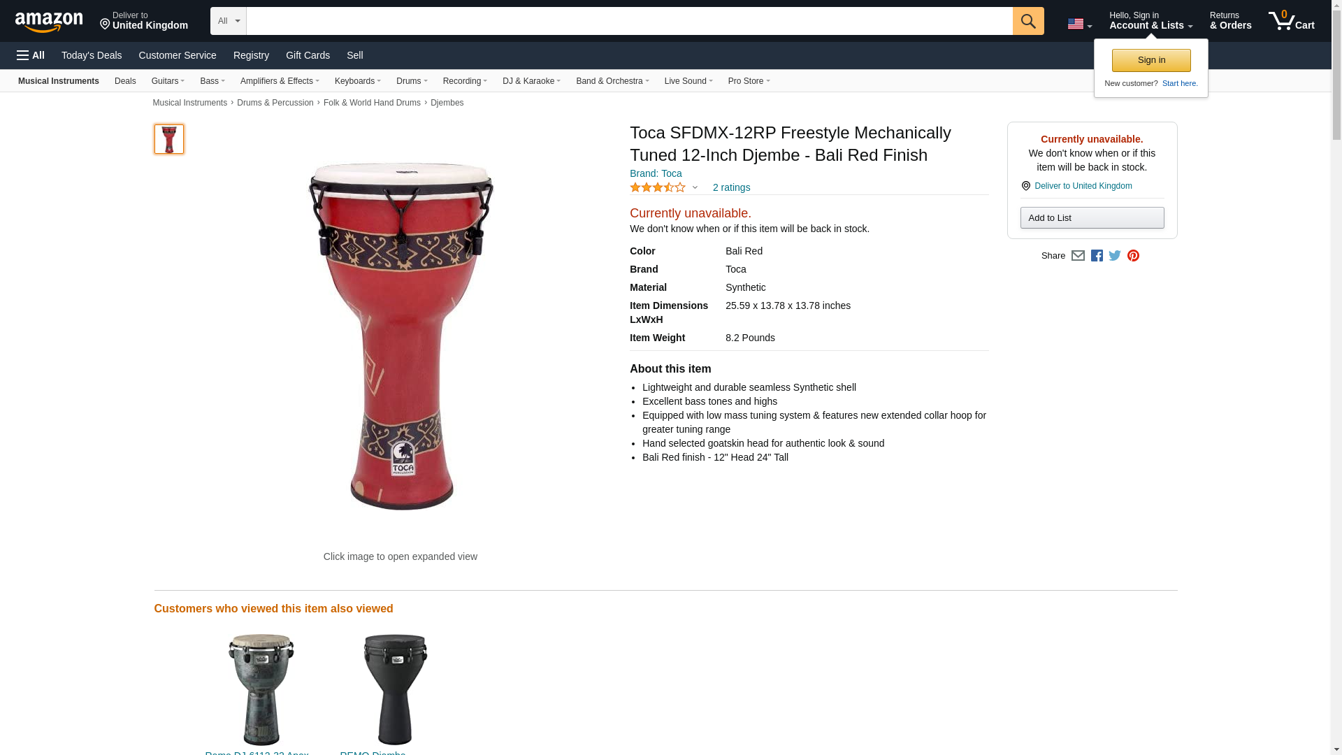 Toca Freestyle Mechanically Tuned 12" Djembe, Extended Rim, Bali Red ? Drums on SALE