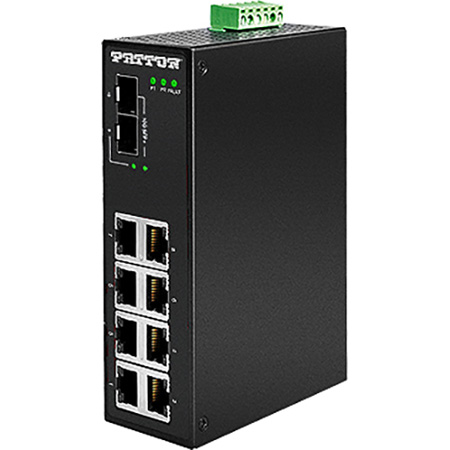 Patton's <b>FP1108E</b> Un-Managed Industrial 10 Gig Ethernet Switch supports industrial applications requiring high bandwidth or high density connections, such as power/utilities, water/wastewater treatment, oil/gas/mining, process control automation, security access control systems, and intelligent transportation systems.</p><p>The FP1108E is housed in a sturdy IP30 rated DIN-rail enclosure with wall mount options. The physical layer interfaces include eight port 10/100/1000 Ethernet ports on RJ45 connectors and two 10G SFP+ cages that can be utilized for fiber trunk connections. To ensure operation in harsh environments the FP1108E provides additional EFT and ESD protection to prevent any unregulated voltage or harmful transients and has an operating temperature rating of -40 to 75°C (-40 to 167°F).</p>