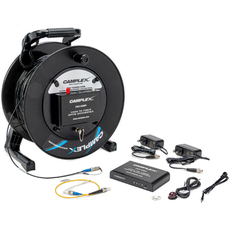 A complete cost effective HDMI to Fiber optic converter & field deployable cable reel system from Camplex. Convert and extend your HDMI signals over 1000 feet of tactical fiber optical cable using the Camplex Tac-N-Go HDMI system. </p><p>Utilizing the Camplex CMX-HDMIF HDMI to fiber converter system, the transmitter is built into a super rugged cable reel and connected to 1,000 feet of tactical grade fiber optic cable delivering the handy convenience of rapid field deployment. The receiver is then placed at the signal headend side - whether its a recorder, monitor, projection system or any other HDMI device. Perfect for extended use of HDTV, LCD monitors, digital projectors, plasma TV's and other equipment requiring HDMI to Fiber conversion.</p><p>The Camplex HDMI over Fiber conversion system delivers professional ST Fiber connectors and a locking power supply to give you the added assurance that you're always connected.</p>