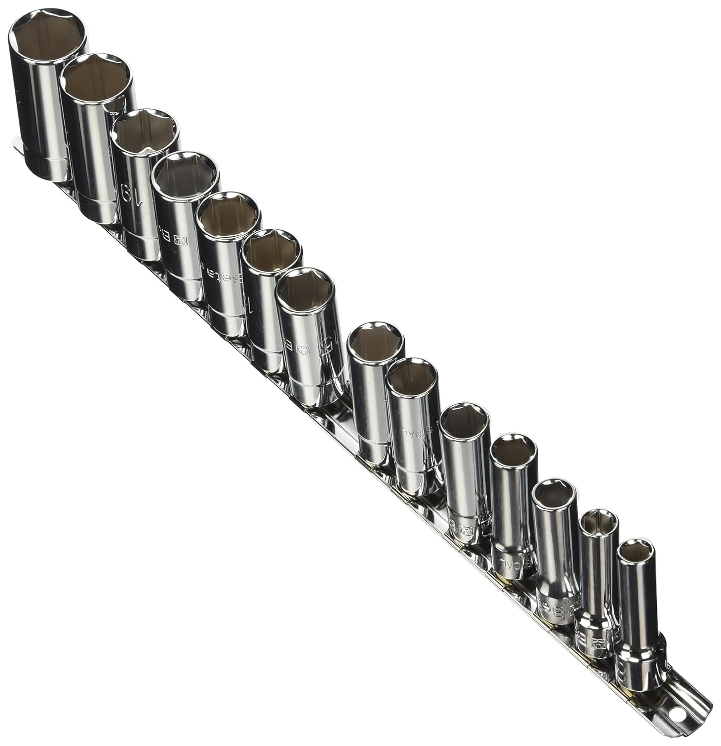 Beta 910AL/SB14 Long 3/8" Drive Socket Set, 14 Pieces ranging from 8mm to 22mm on rail, 6 Point, with Chrome Plated