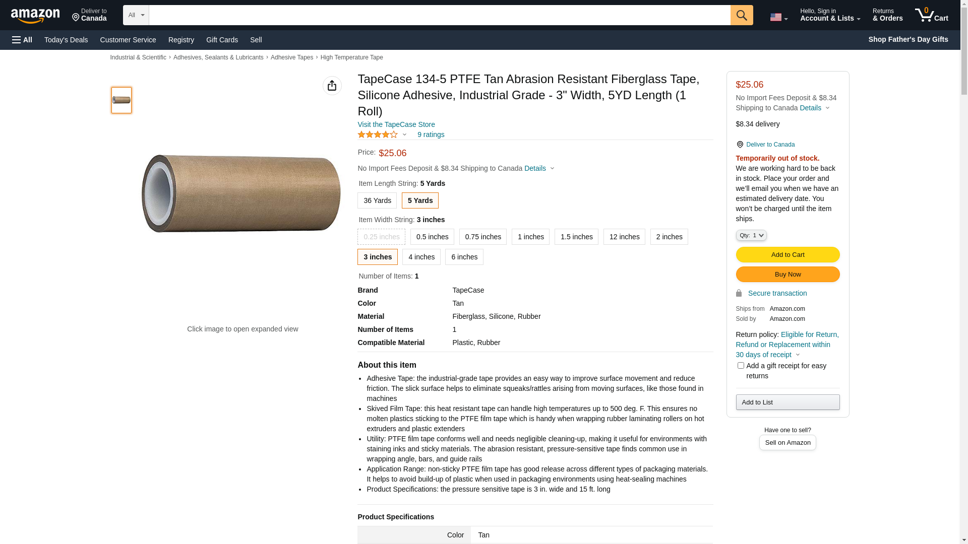 TapeCase 134-5 PTFE Tan Abrasion Resistant Fiberglass Tape, Silicone Adhesive, Industrial Grade - 3" Width, 5YD Length (1 Roll)