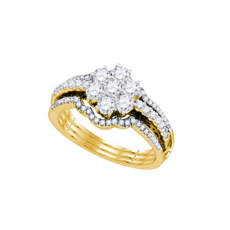 14kt Yellow Gold Womens Diamond Cluster Bridal Wedding Engagement Ring Band Set 1.00 Cttw