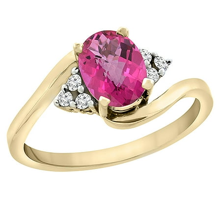 10K Yellow Gold Diamond Natural Pink Sapphire Engagement Ring Oval 7x5mm, sizes 5 - 10