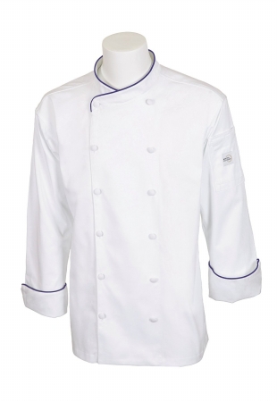 Mercer Culinary M62020WRB5X Renaissance Men's Scoop Neck Chef Jacket, 5X-Large, White with Royal Blue Piping