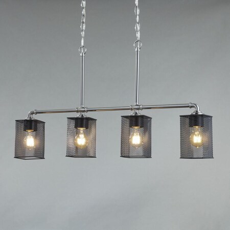 Justice Design Group MSH-8465-15-NCKL Justice Design Group MSH-8465-15 Bronx 4 Light 37" Wide Linear Chandelier - with Wire Mesh Shades