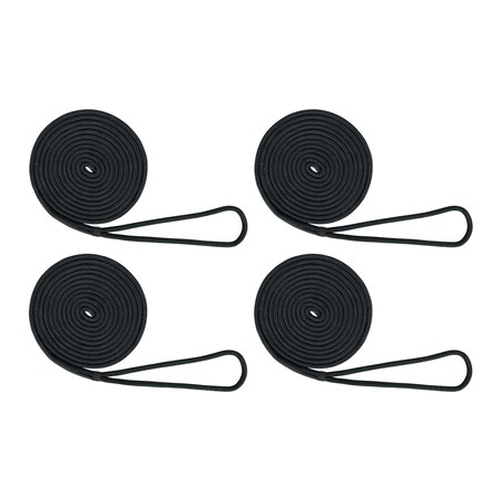 Extreme Max 3006.3016 BoatTector Double Braid Nylon Dock Line Value 4-Pack - 3/8" x 15', Black