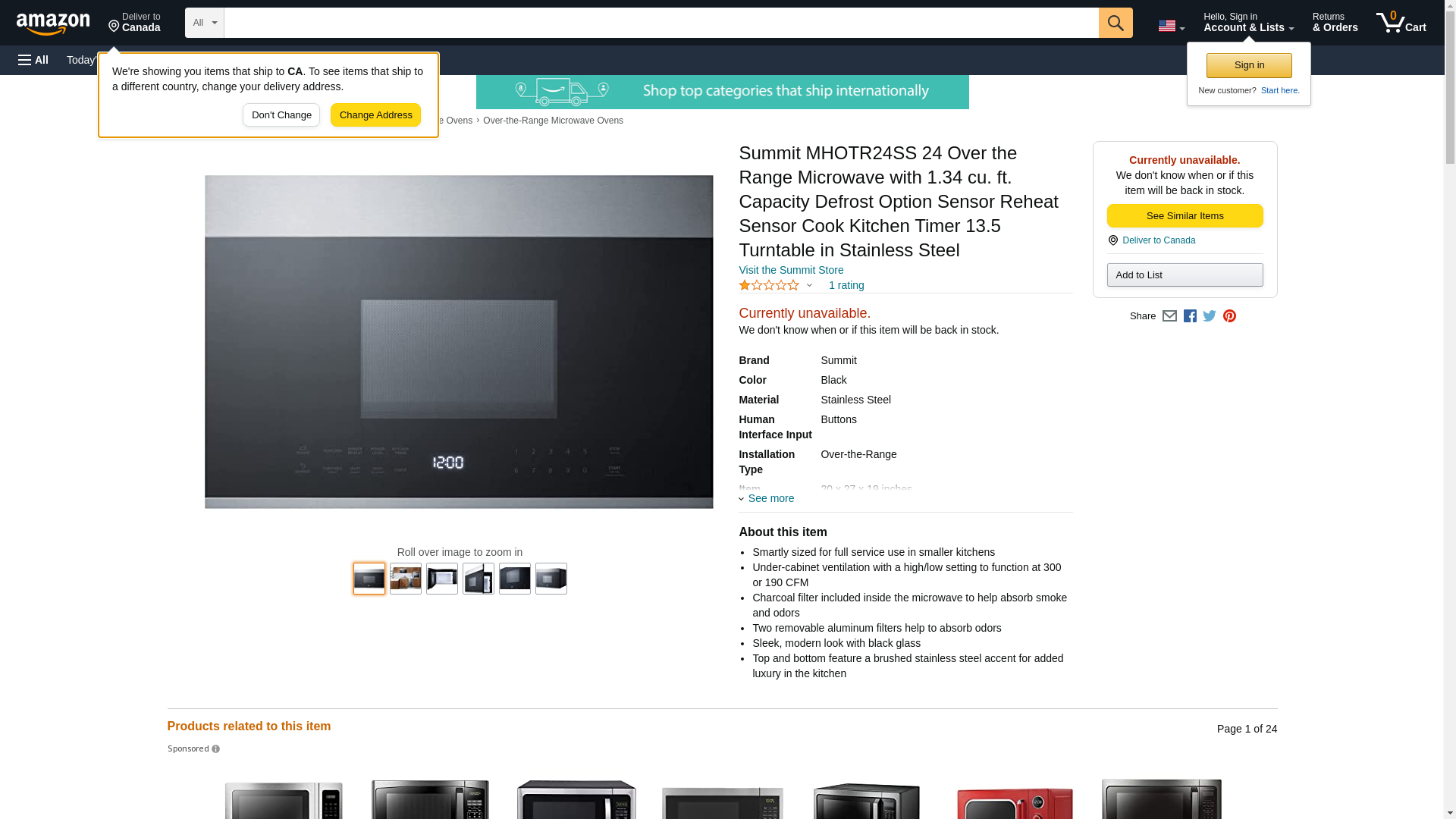 Summit MHOTR24SS 24"" Over the Range Microwave with 1.34 cu. ft. Capacity Defrost Option Sensor Reheat Sensor Cook Kitchen Timer 13.5"" Turntable in Stainless Steel This 24 over the range microwave by Summit comes with 1.34 cu. ft. capacity for a convenient heating option in your kitchen without turning on your stove. It also features versatile ventilation option. cassette filters. glass turntable. popcorn setti...