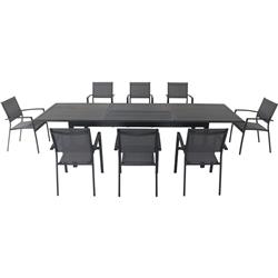 Dawson 9-Piece Dining Set with 8 Sling Chairs and an Expandable 40" x 118" Table - Hanover DAWDN9PC-GRY