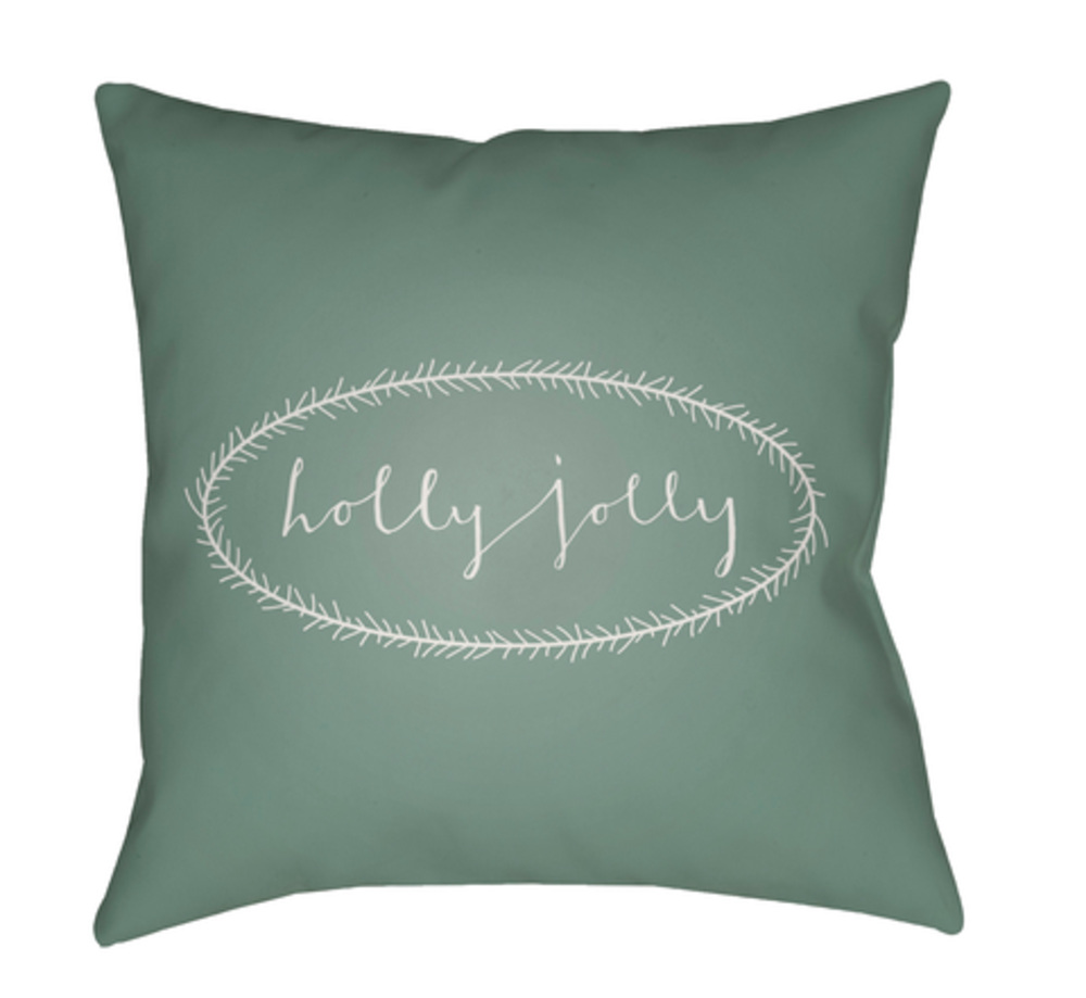 Surya HDY035-1818 18 x 18 x 4 in. Holly Jolly Square Throw Pillow, Green & White