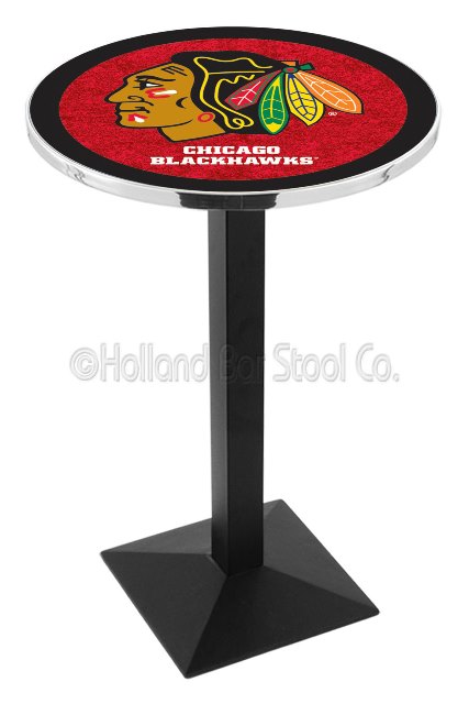 Holland Bar Stool L217B36ChiHwk-R 36 In. Black Wrinkle Chicago Blackhawks Pub Table With Red Background