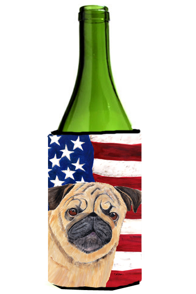 Caroline's Treasures SC9006LITERK USA American Flag with Pug Wine Bottle Hugger Bottle Cooler Sleeve Hugger Machine Washable Collapsible Insulator Beverage Insulated Holder