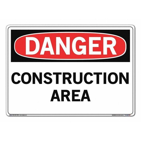 Vestil SI-D-56-E-LB-011 CONSTRUCTION AREA Danger Label, Vinyl, 0.011" Overall Size, 20.5" W x 14.5" H