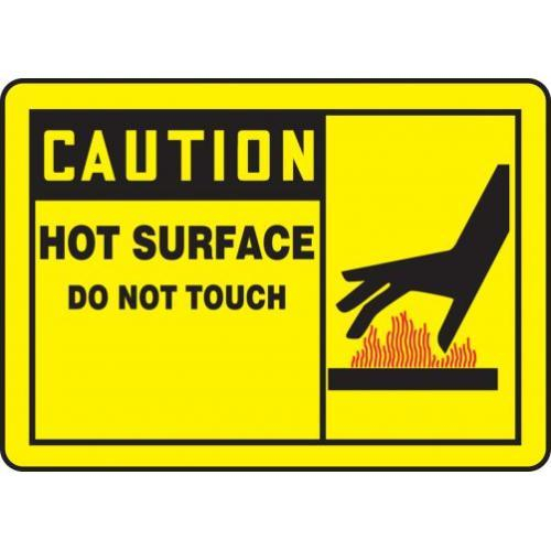 - Caution Hot Surface - Do Not Touch safety sign printed in OSHA-compliant colors