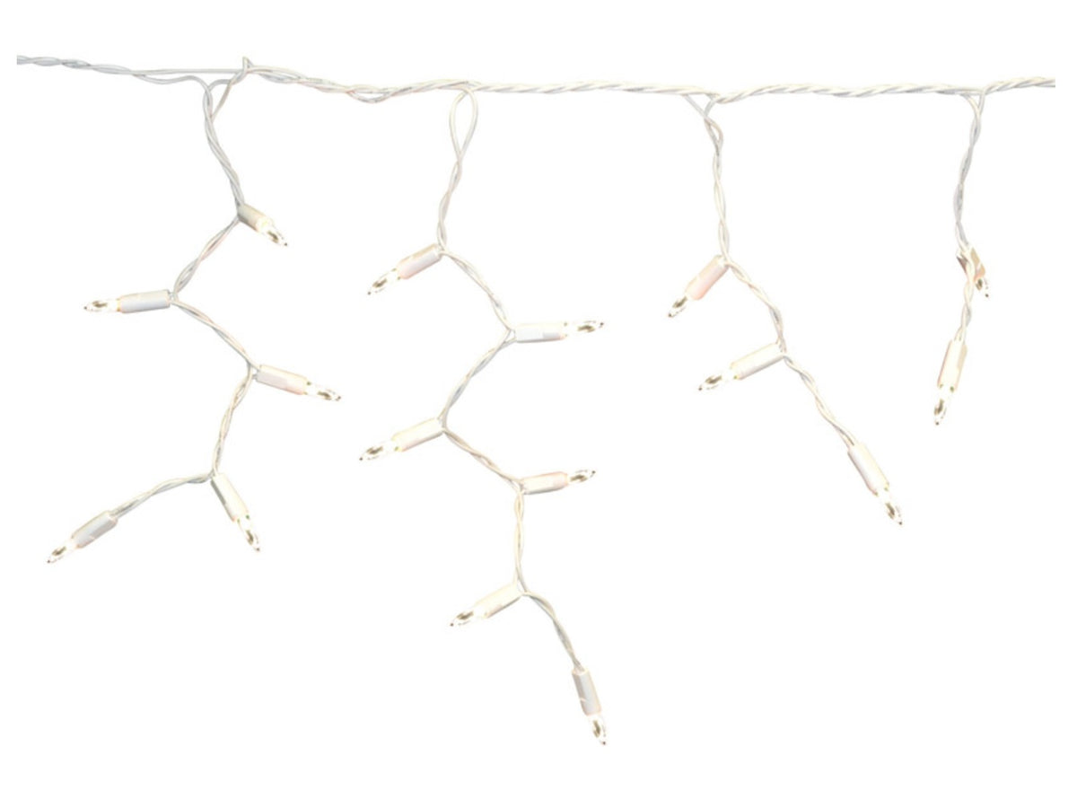 Decorate your Halloween and holiday celebrations with the icicle light set. The design reflects light in all directions, so it offers a brighter shine. Features. Icicle LED Commercial Light Set 100 Lights. Lumens 8 lumens. Wire Color White. Bulb Type LED. Style Icicle. Bulb Color Pure White. Number of Lights 100 lights. Indoor or Outdoor Indoor and Outdoor. Power Source Plug In. Weather Resistant Yes. Case of 6