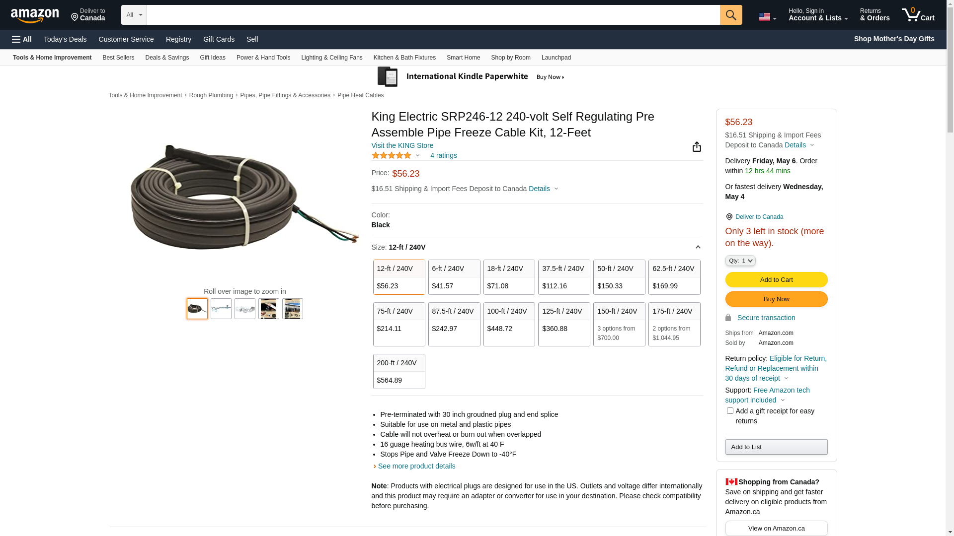 King Electric SRP246-12 240-volt Self Regulating Pre Assemble Pipe Freeze Cable Kit, 12-Feet