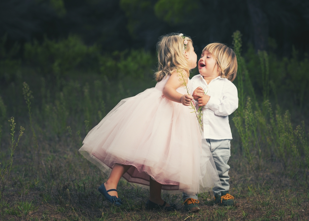 Posterazzi DPI12270865 A Young Girl with A Pink Princess Dress Leans in To Kiss A Young Boy - Tarifa Cadiz Andalusia Spa