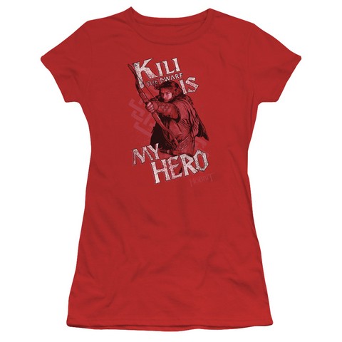 Trevco The Hobbit-Kili Is My Hero Short Sleeve Junior Sheer Tee, Red - Large