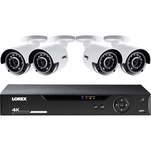 Lorex LHV5100 Series 8-Channel 4K UHD DVR Bundle with 1TB HDD and 4X LBV8531B 4K UHD Network Bullet Cameras with 135' Night Vision, H.264+, White